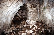 The flat land in south end of Group H is littered with large limestone chunks, most with evidence of shaping. They appear to be large architectural blocks or monuments in progress. The quarry behind Temple XXVI is less than 50 meters away and is probably the stones' point of origin.