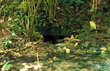 | Two major spring sources flow a short distance and join at the beautiful entrance of the Picota aqueduct to create the Picota stream. (The entrance is depicted above.) The stream then flows beneath a structure and continues underground for 50 meters forming a land bridge over the Picota. This land bridge is very similar in size and function to that of the Otulum. |