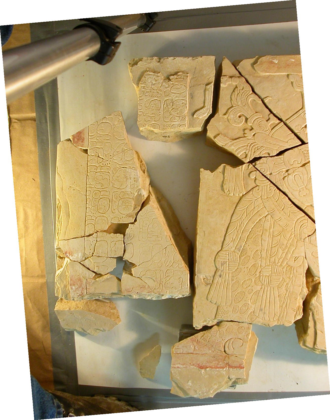 Temple XXI Tablet: left side, including glyphic columns A1-D10 (partial).